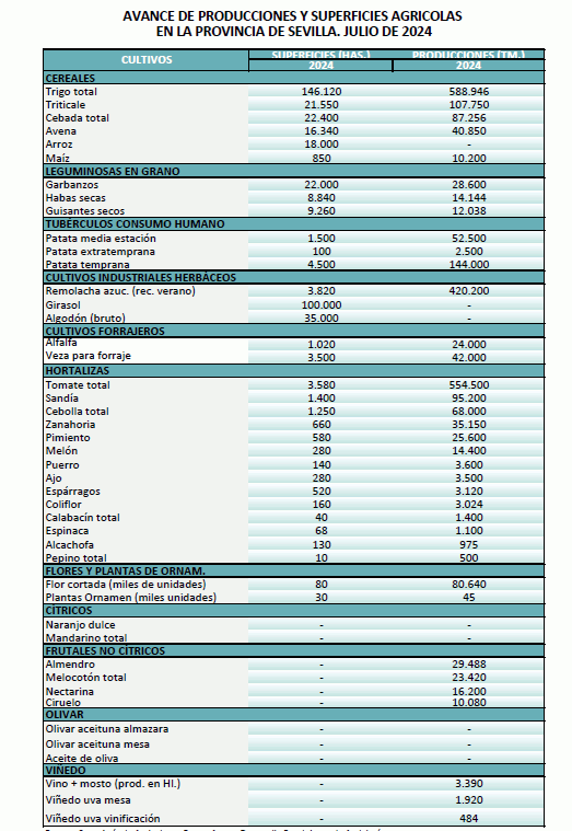Avance de producciones y superficies agrícolas. Julio 2024