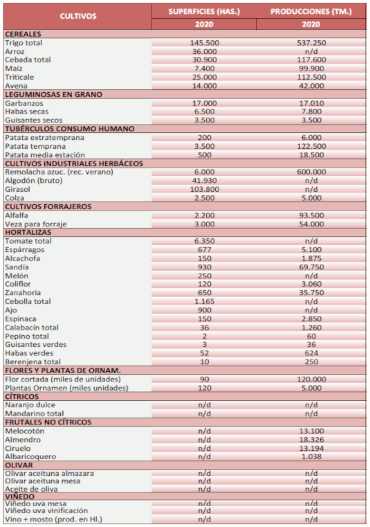 Avance de producciones y superficies agrícolas. Mayo 2020