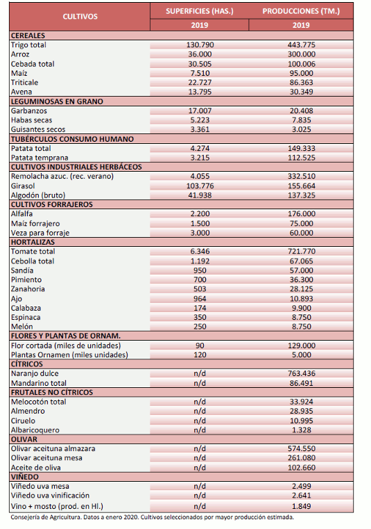 Fuente: Consejeria de Agricultura, Ganadería, Pesca y Desarrollo Sostenible, Junta de Andalucía.