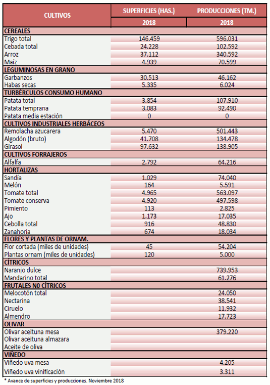 Avance de producciones y superficies agrícolas. Septiembre 2018