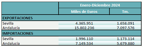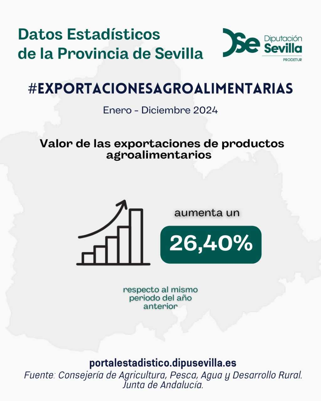 El valor de las exportaciones de productos agroalimentarios de la provincia de Sevilla crece un 26,40% en el periodo enero-diciembre de 2024 con respecto al mismo periodo del año anterior