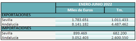 Balanza comercial agroalimentaria de la provincia de Sevilla. Enero-Junio 2022
