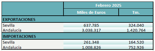 Balanza comercial agroalimentaria de la provincia de Sevilla. Febrero 2025