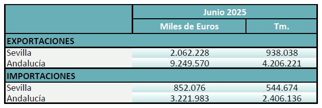 Balanza comercial agroalimentaria de la provincia de Sevilla. Junio 2025