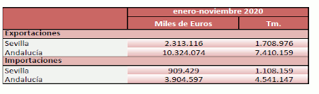 Balanza comercial agroalimentaria de la provincia de Sevilla. Noviembre 2020