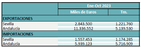 Balanza comercial agroalimentaria de la provincia de Sevilla. Octubre 2023