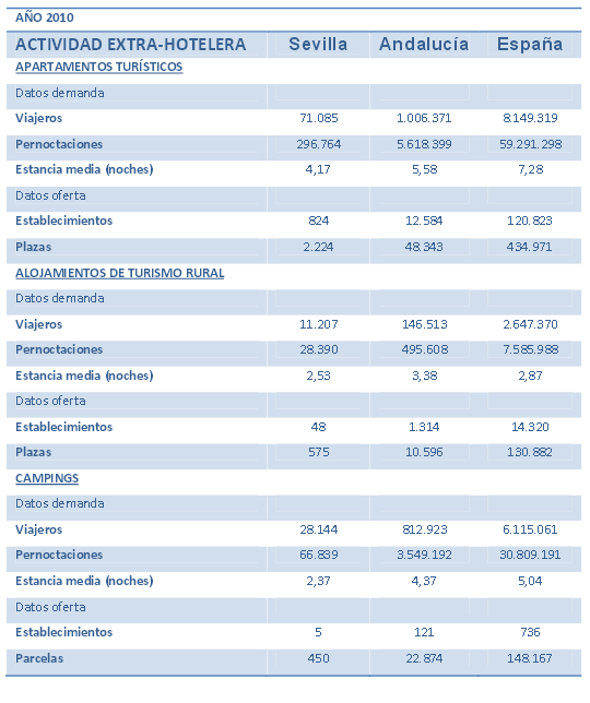 Datos básicos actividad extrahotelera. Año 2010