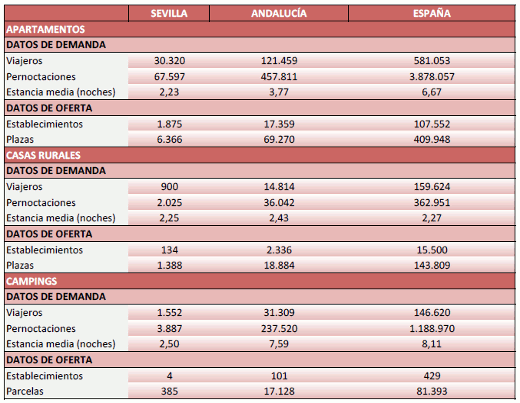 En Enero de 2020, el total de viajeros alojados en los establecimientos extrahoteleros de la provincia de Sevilla alcanza la cifra de 32.772