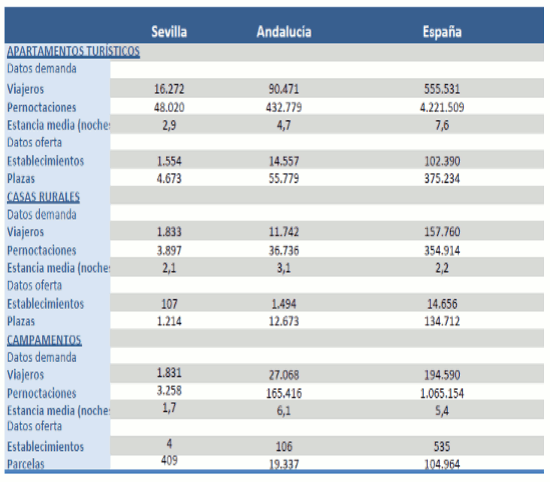 En el pasado mes de Marzo aumentaron un 10% los viajeros alojados en establecimientos extrahoteleros en la provincia de Sevilla, respecto al mismo mes del año anterior
