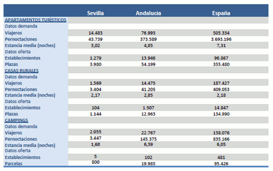 En el pasado mes de Noviembre aumentaron un 14,5% los viajeros alojados en establecimientos extrahoteleros en la provincia de Sevilla, respecto al mismo mes del año anterior