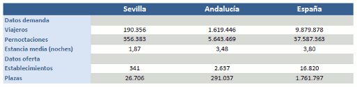 Las pernoctaciones de los viajeros alojados en hoteles de la provincia de Sevilla crecen un 12% en Julio de 2014, respecto al mismo mes del año pasado
