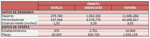 En Julio de 2018, las pernoctaciones de los turistas alojados en los hoteles de la provincia de Sevilla crecen un 7,06%, respecto al mismo mes del año anterior