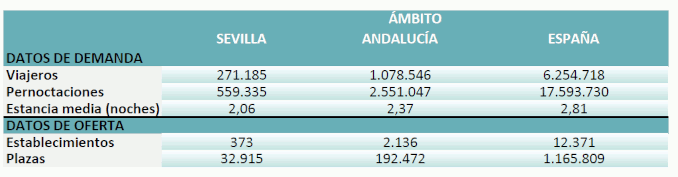 En noviembre de 2022, los viajeros alojados en los hoteles de la provincia de Sevilla alcanzan un total de 271.185, un 17,32% más que el en el mismo mes del año pasado