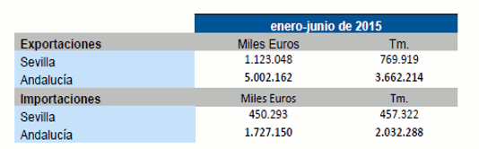 Datos sobre Balanza comercial agroalimentaria de la provincia de Sevilla. Enero-Junio 2015