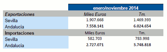 Datos sobre Balanza comercial agroalimentaria de la provincia de Sevilla. Enero-Noviembre 2014
