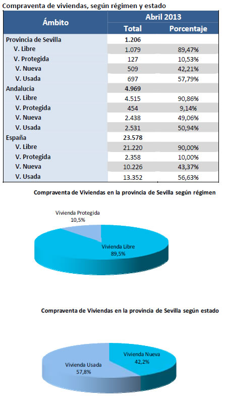 Las compraventas de viviendas en la provincia de Sevilla, ascienden a un total de 1.206 en el mes Abril.