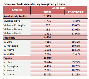 En Abril de 2019 se han registrado en la provincia de Sevilla un 12,2% más de contratos de compraventas de viviendas que en el mismo mes del año anterior.