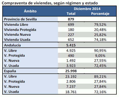 En Diciembre de 2014 se ha registrado un 28,5% más de contratos de compraventas de viviendas en la provincia de Sevilla que en Diciembre de 2013