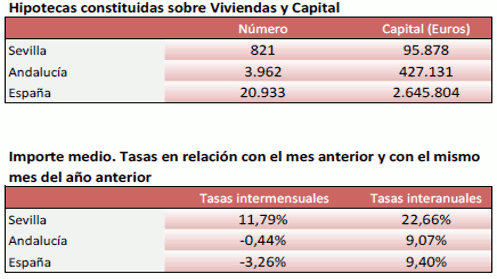 En Diciembre de 2018, el número de hipotecas sobre viviendas en la provincia de Sevilla crece un 17% en términos interanuales