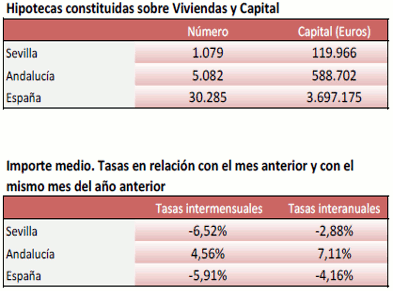 En Diciembre de 2019, el número de hipotecas sobre viviendas en la provincia de Sevilla es de 1.079. Un 24,7% más que el mismo mes del año anterior