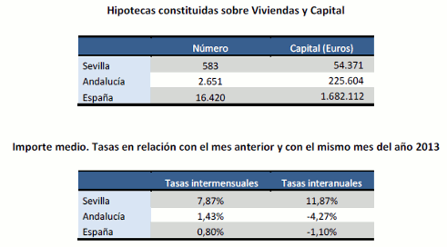 El número de hipotecas sobre viviendas en la provincia de Sevilla, en Febrero de 2014, es de 583
