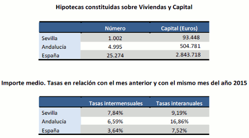 El número de hipotecas sobre viviendas en la provincia de Sevilla en Junio de 2016 crece un 9,2% con respecto al año anterior