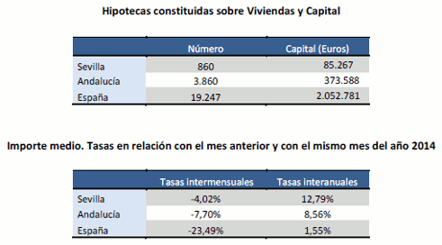 El número de hipotecas sobre viviendas en la provincia de Sevilla en Noviembre de 2015 crece un 14,7% con respecto al año anterior