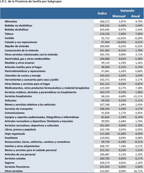 La inflación desciende tres décimas en Julio, situándose la tasa de variación interanual del IPC general en la provincia de Sevilla en un 1,48%.