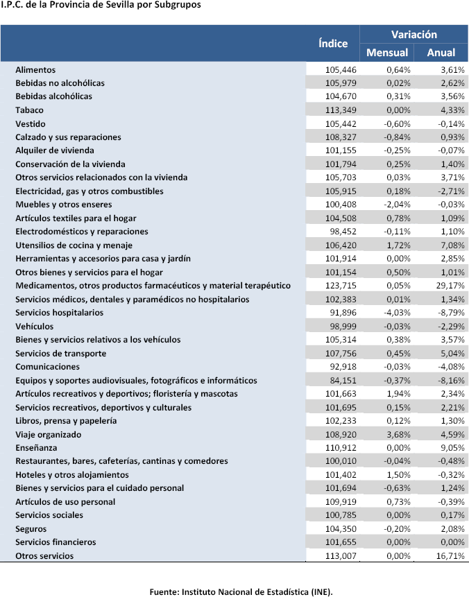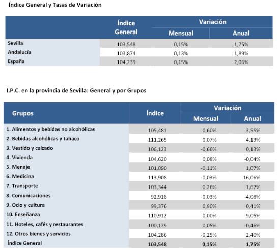 La tasa de variación interanual del IPC general en la provincia de Sevilla asciende más de tres décimas en el mes de junio, hasta situarse en el 1,75%.