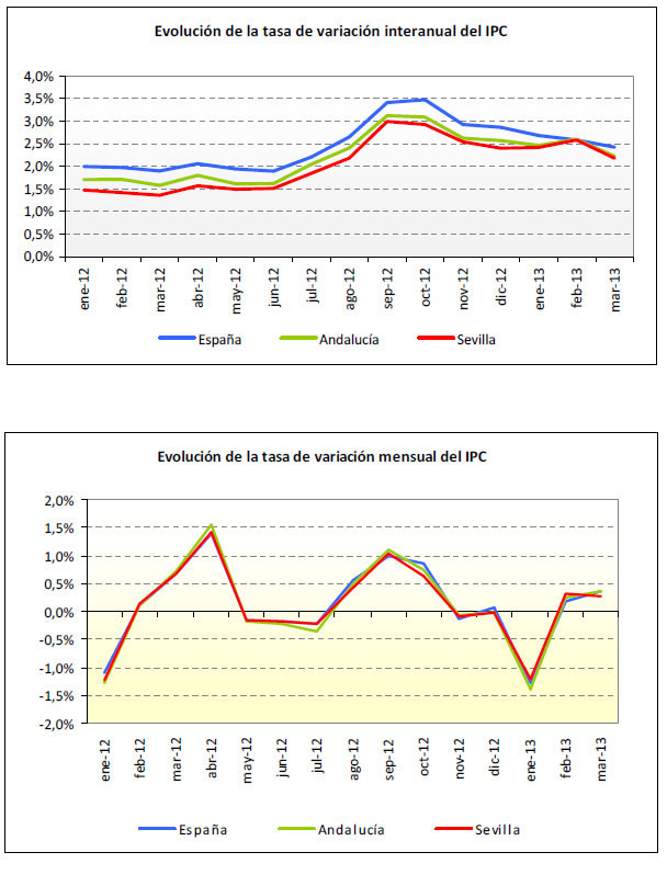 La inflación interanual bajó cuatro décimas en Marzo de 2013