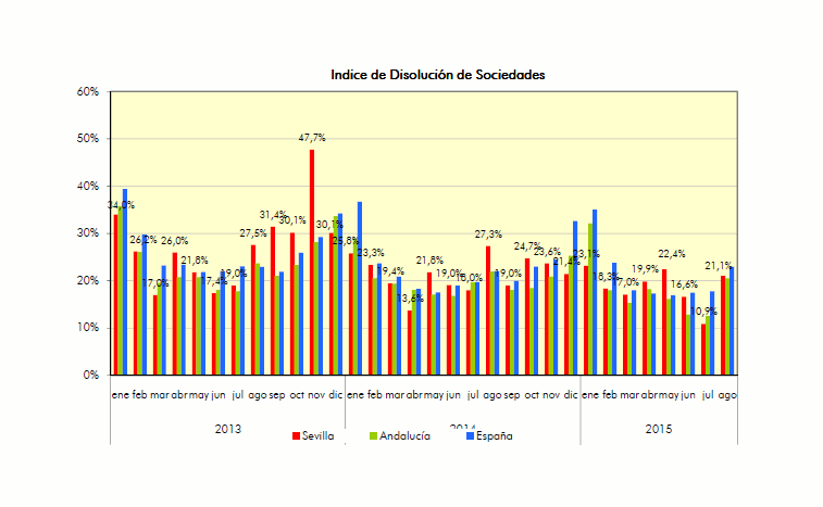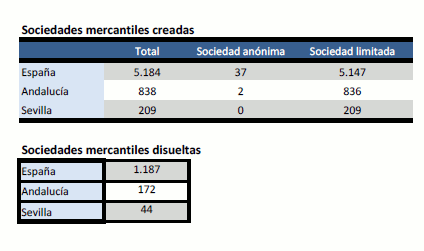 En Agosto de 2015 se crearon en la provincia de Sevilla 209 sociedades mercantiles, un 21,5% más que en Agosto de 2014