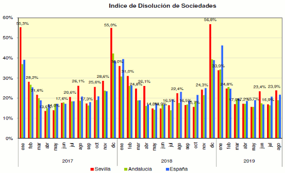 En Agosto de 2019 se han constituido en la provincia de Sevilla 184 sociedades mercantiles