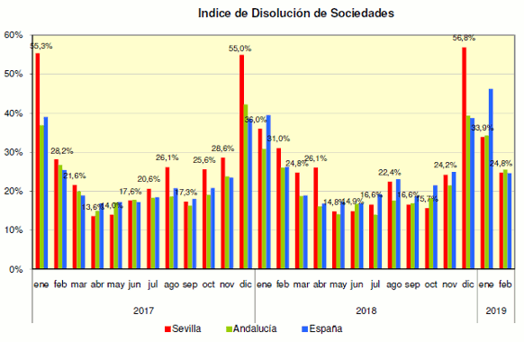 En Febrero de 2019 se han creado en la provincia de Sevilla un 32% más de sociedades mercantiles que el mismo mes del año anterior, y un 12% más que el mes anterior