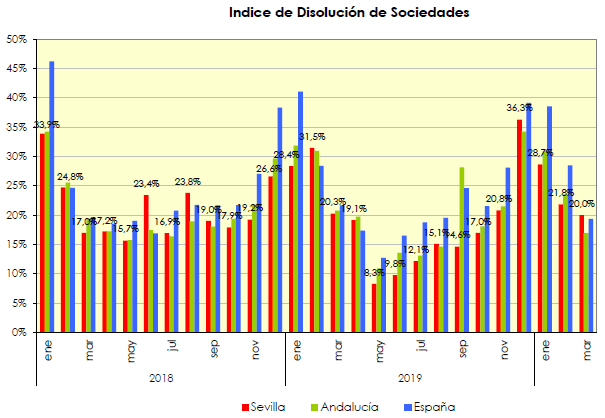 En Marzo de 2021 se han creado en la provincia de Sevilla 530 sociedades mercantiles. Un 82,1% más que en el mismo mes del año anterior, y un 46,4% más que el mes anterior