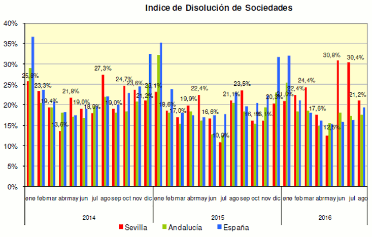 En Septiembre de 2016 se han creado en la provincia de Sevilla un 31,3% más de sociedades mercantiles que en el mismo mes del año anterior, y un 11,8% más que el mes anterior