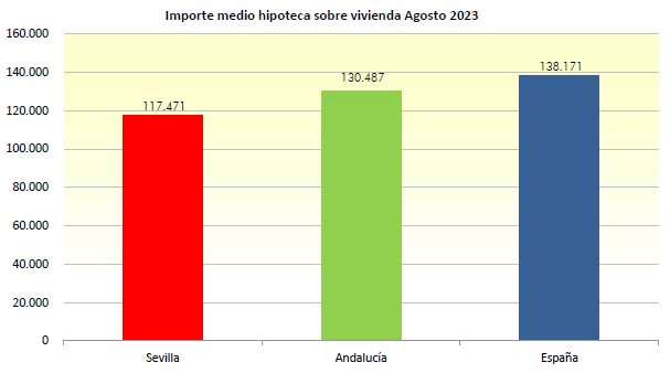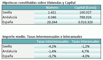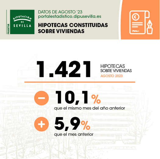 En Agosto de 2023, el número de hipotecas sobre viviendas en la provincia de Sevilla es de 1.421, un 10,1% menos que en el mismo mes del año anterior, y un 5,9% más que en el mes anterior