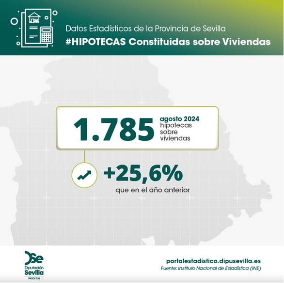 En el mes de agosto de 2024, el número de hipotecas sobre viviendas en la provincia de Sevilla es de 1.785, un 25,6% más que en el año anterior