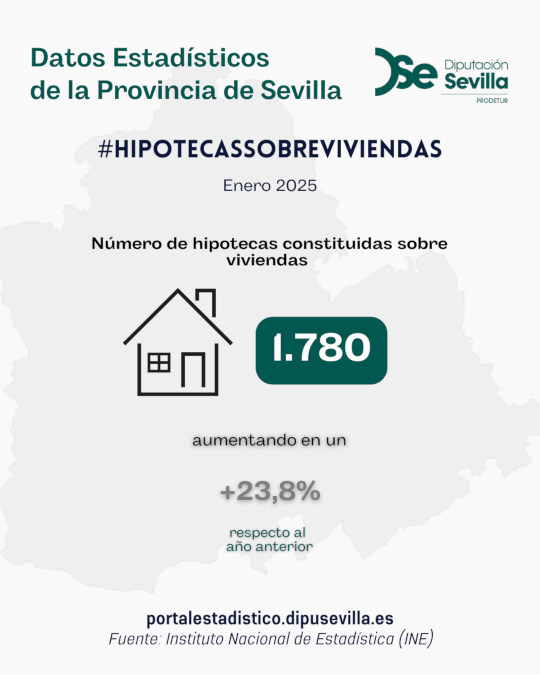 En el mes de enero de 2025, el número de hipotecas sobre viviendas en la provincia de Sevilla es de 1.780, un 23,8% más que en el año anterior