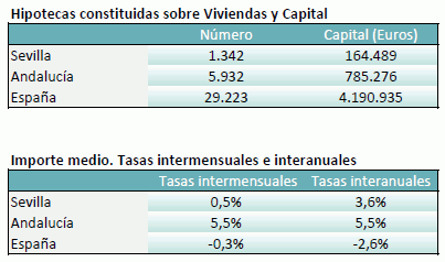 En Julio de 2023, el número de hipotecas sobre viviendas en la provincia de Sevilla es de 1.342, un 1,8% menos que en el mismo mes del año anterior, y un 10,1% menos que en el mes anterior
