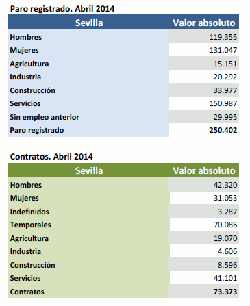 Datos sobre paro registrado y contratos. Abril de 2014