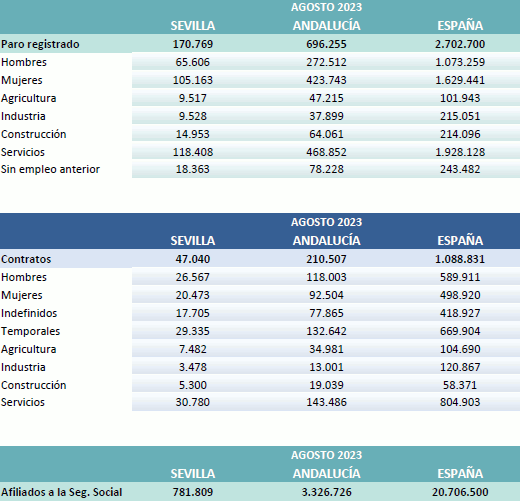 Datos sobre paro registrado y contratos. Agosto 2023