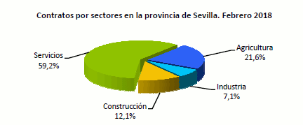 En Febrero de 2018, el paro registrado ha descendido en un 6,54% respecto al mismo mes del año anterior. Los contratos realizados en este mes aumentan un 8,7% en términos interanuales
