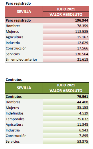 Datos sobre paro registrado y contratos. Julio de 2021