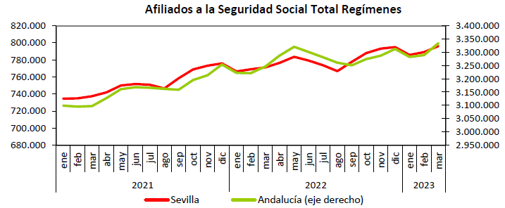 En marzo de 2023 el paro registrado ha descendido en un -9,25% con respecto a marzo del año anterior. Los contratos indefinidos han aumentado en un 60,02% en relación con el mismo mes del año anterior. Las afiliaciones aumentaron en un 3,24% interanual