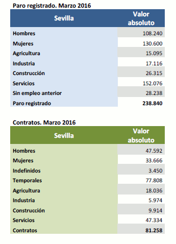 Datos sobre paro registrado y contratos. Marzo de 2016