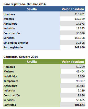 Datos sobre paro registrado y contratos. Octubre de 2014