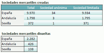 • La creación de sociedades mercantiles en Andalucía crece en relación con el año anterior un 6,4%, y en España un 7,5%.