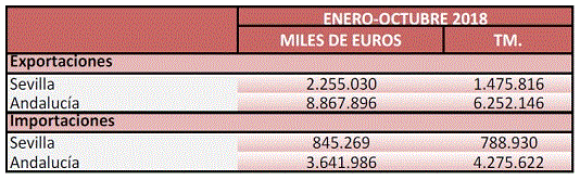 El valor de las exportaciones de productos agroalimentarios de la provincia de Sevilla ha sido de 2.255 millones de euros el periodo Enero-Octubre de 2018 respecto al mismo periodo del año anterior