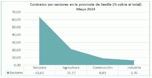 En mayo de 2024, el paro registrado en el sector agrícola en la provincia de Sevilla alcanza un total de 8.089 personas, disminuyendo un 13,91% respecto al mismo mes del año anterior. El total de contratos en el sector agrícola en la provincia de Sevilla ha sido de 13.448 contratos que suponen el 21,17% del total de contratos provinciales