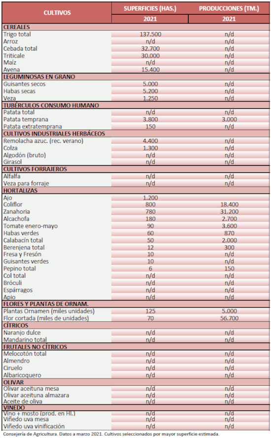 Avance de producciones y superficies agrícolas. Enero 2021